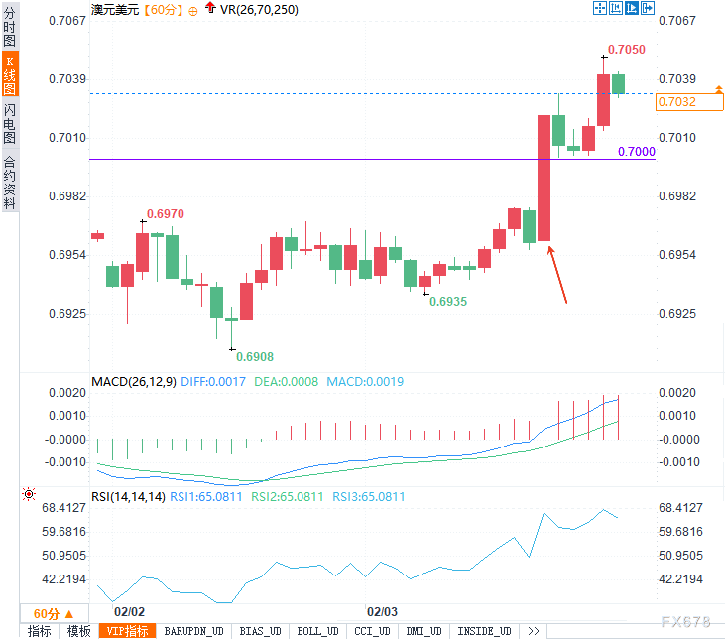 汇通财经APP讯——澳元兑美元走势明显加速,2月3日周二欧洲时段,汇价交投0.7030附近,距离此前在0.69关口附