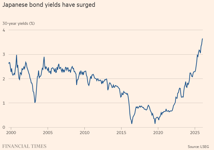 FX168财经报社(北美)讯 在过去的几周里,日本政府债券(JGB)收益率已飙升至20世纪90年代以来的最高水平,这引起了东京及全球各地的关注。从表面上看,最近的这一轮暴涨是对政府考虑“暂时减免食品消费税”消息的回馈。考虑到生活必需品成本的持续上升——例如大米价格已经翻倍——在这一代人生活成本几乎未变过的经济体中,减税提议引起了强烈的共鸣。